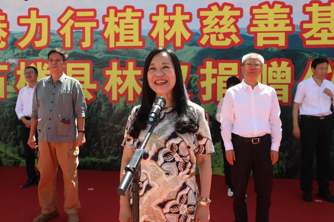 凌友诗深情讲述了基金会创始人谢士恒的公益初心,感谢晋港两地政府对项目的支持,寄语石楼百姓管好林木、发展生态经济,让这份跨越香江的情谊落地生根。