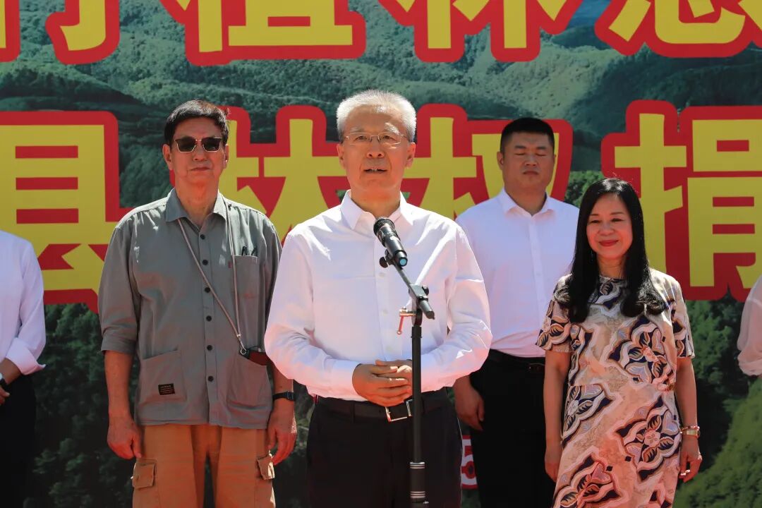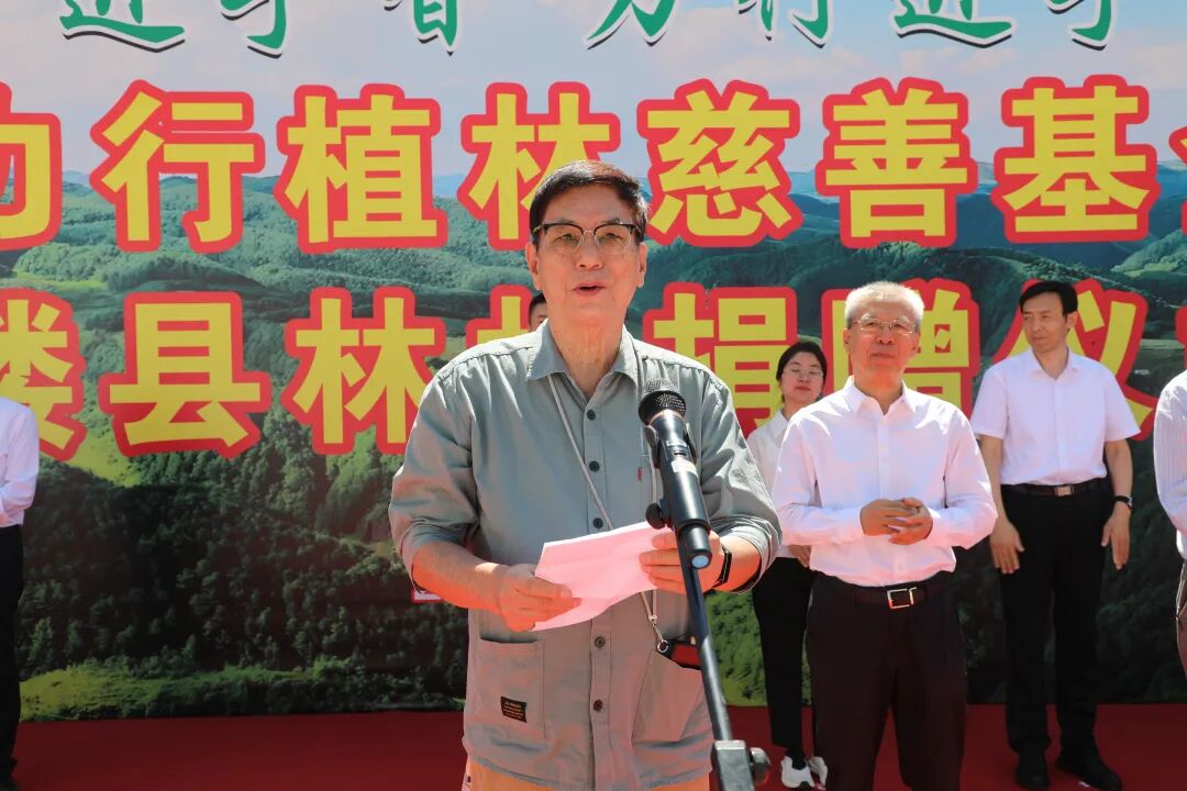 杜侯平在致辞中代表全县12万老区人民致谢。他指出,此次捐赠是践行“两山”理论的生动实践。二十年来,基金会扎根石楼,不仅通过植树造林让2600余亩“黄土坡”蜕变为“绿山头”,更同步开展打井、修桥、义诊等惠民行动。如今的石楼已成为全省退耕还林第一县,生态改善带动工业破零、农业提质、文旅融合,民生福祉持续提升。作为红军东征首站地、晋西会议召开地,石楼将以此次林权接收为契机,传承“红色基因”、厚植“绿色底蕴”,恳请各方继续助力老区现代化建设。