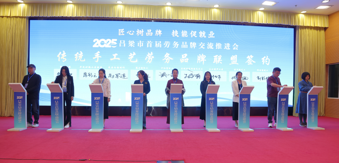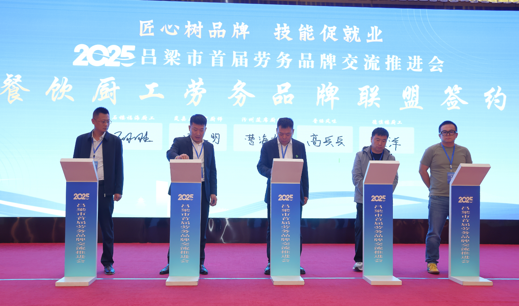 推进会现场还迎来重要时刻——“福海厨工”“石楼物业工”“黄河陶艺”分别与省内外同类型劳务品牌达成联盟签约,标志着石楼县劳务品牌从“单打独斗”迈向“集群发展”,为后续资源整合、协同赋能奠定坚实基础。