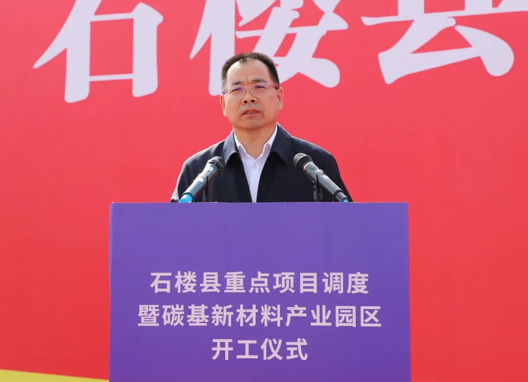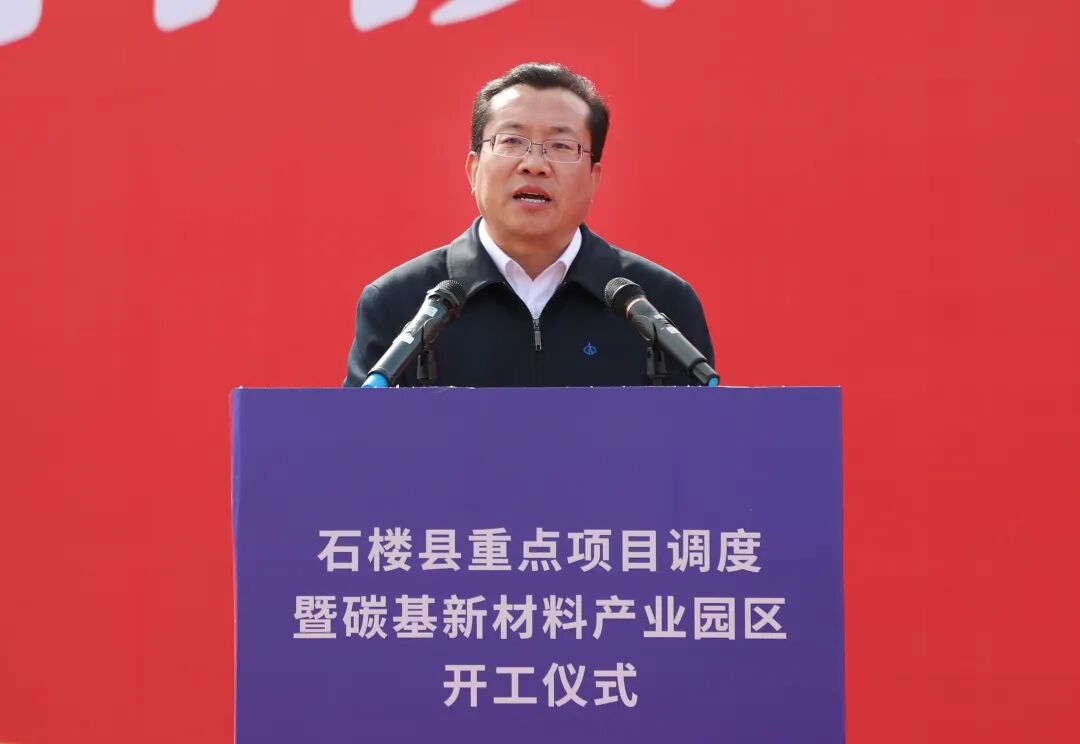 在开工仪式上,县委书记杜侯平代表县委、县政府向长期关心支持石楼发展的各级各界表示衷心感谢。他表示,碳基新材料产业园区的规划建设,始终得到省、市党委政府的高度重视和大力支持,凝聚了社会各界的智慧与力量,这才让“蓝图”变成“工地”,“愿景”变成“实景”。