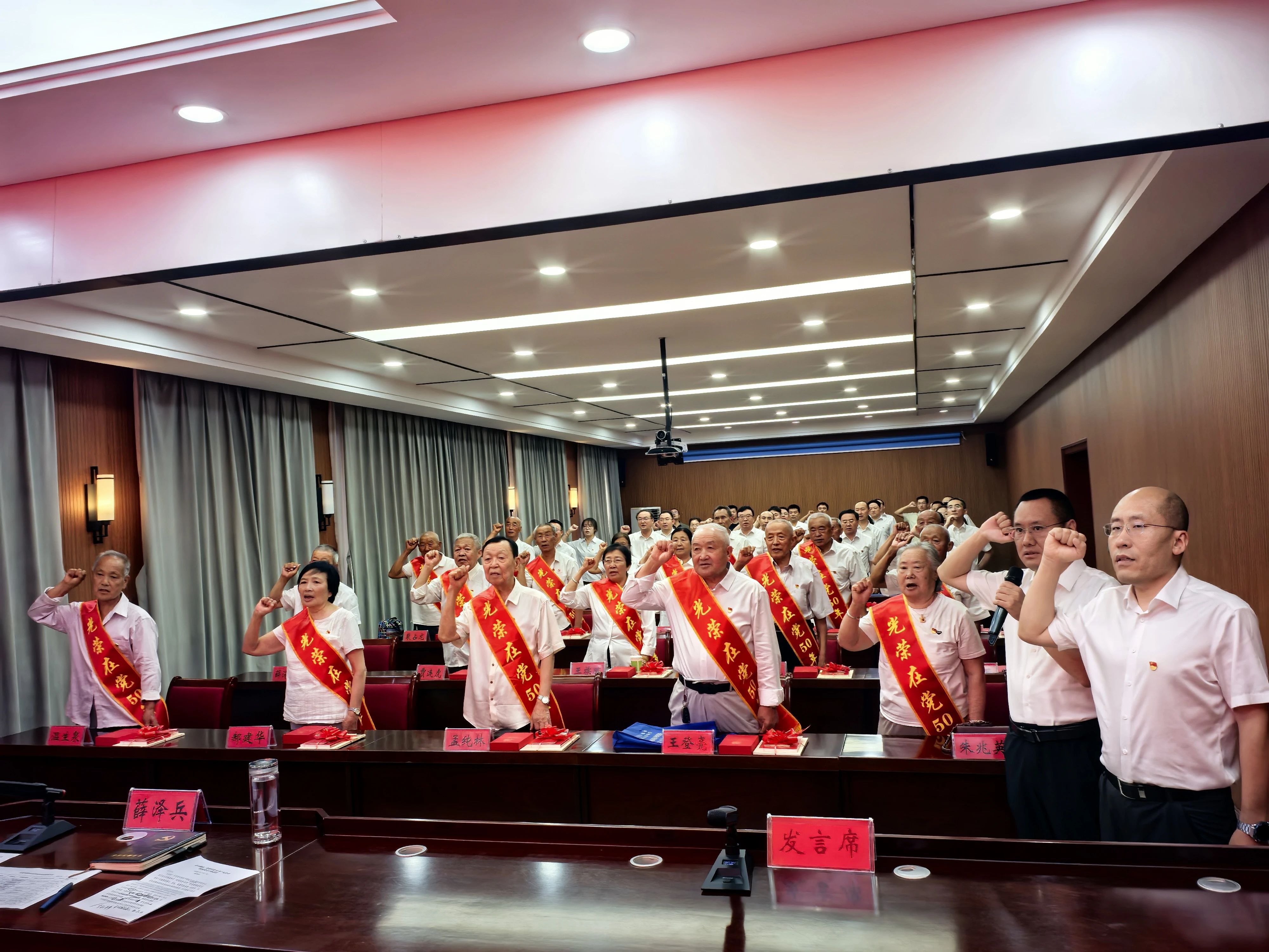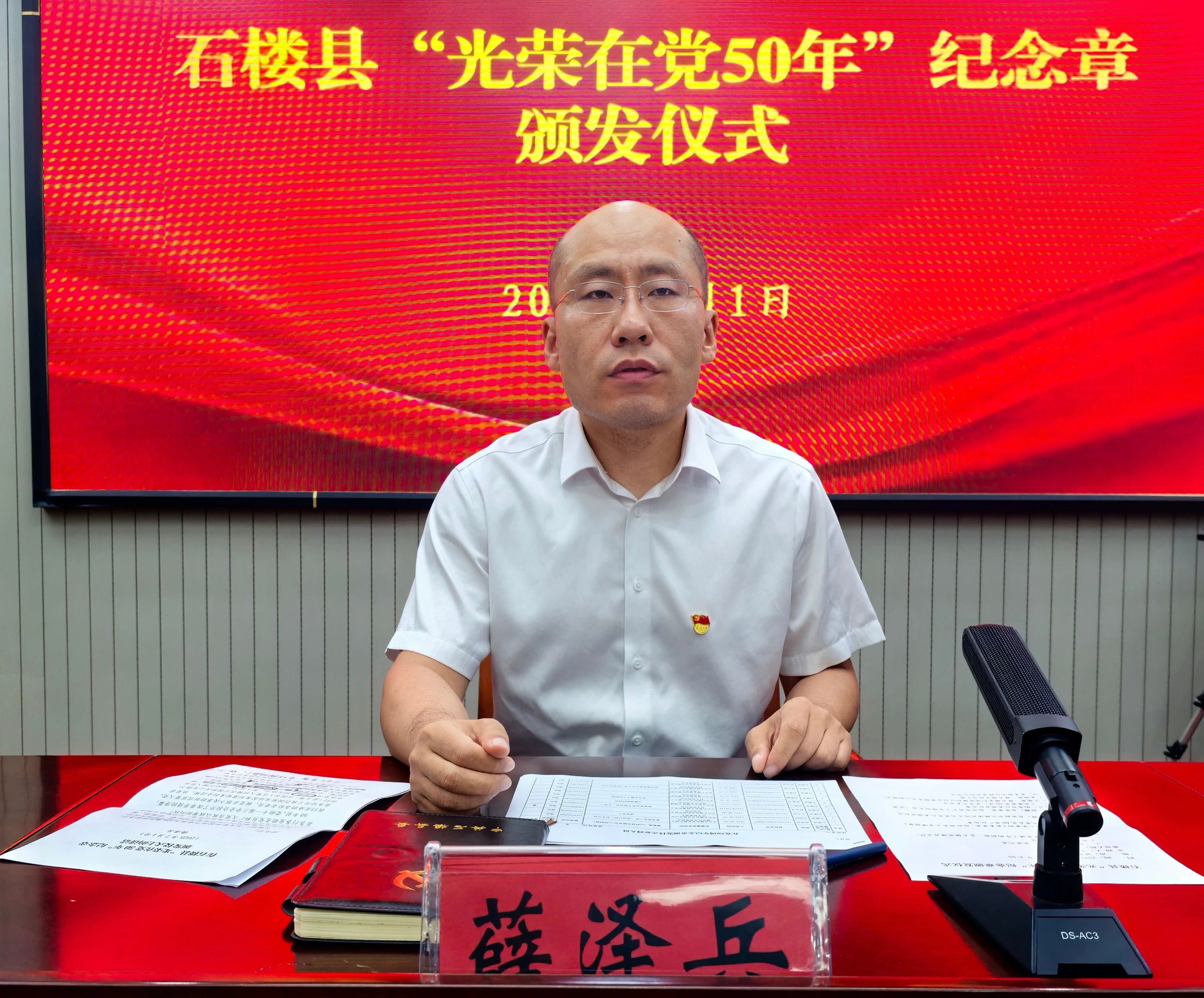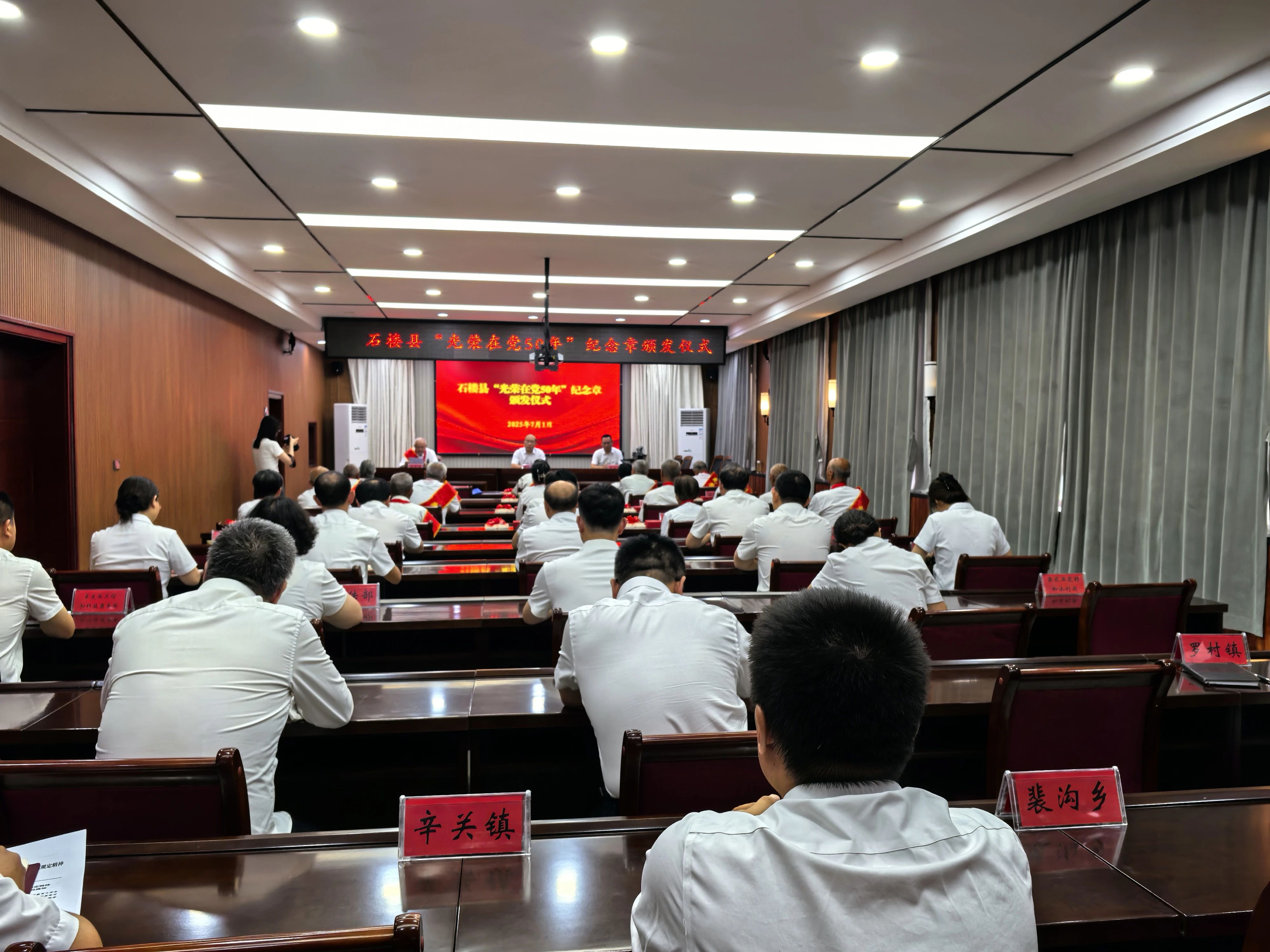 7月1日,石楼县隆重举行 “光荣在党50年” 纪念章颁发仪式,县委副书记薛泽兵,县委常委、组织部部长王宇峰出席会议。全县各机关单位和各乡镇的“光荣在党50年” 党员代表,县直各大口分管党建工作的副职、组织部部务会成员、各乡镇党建办负责人和乡镇组织委员参加仪式。