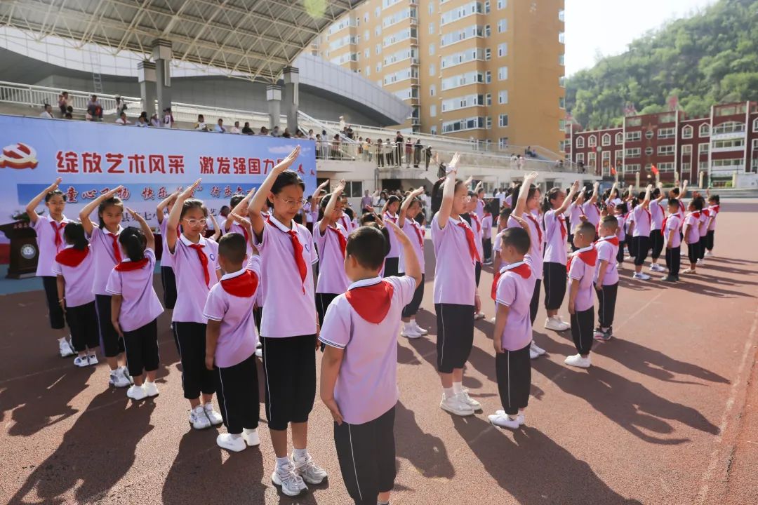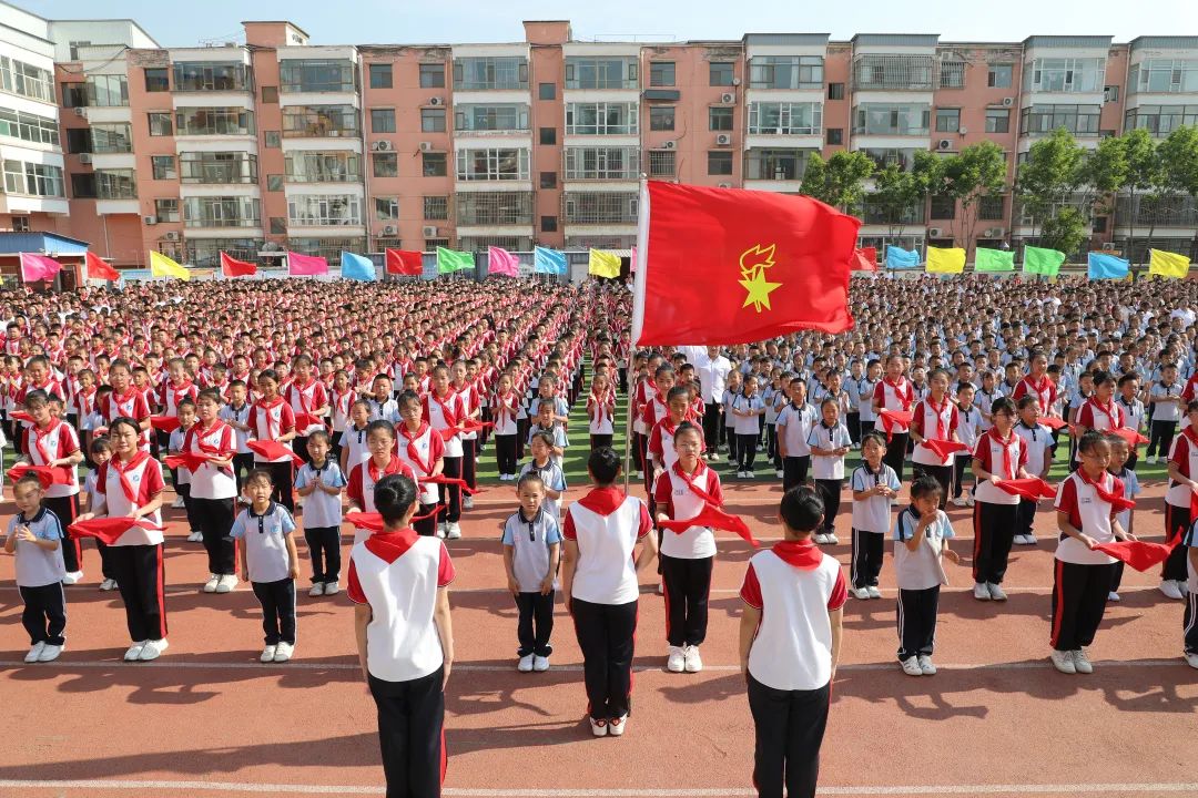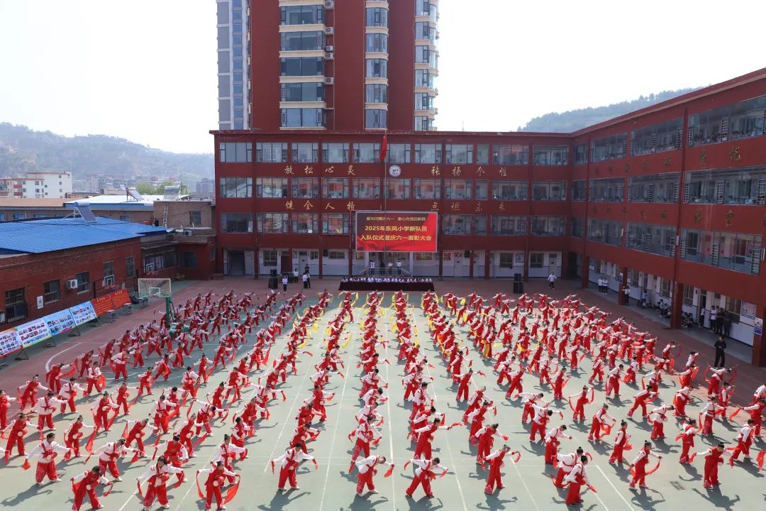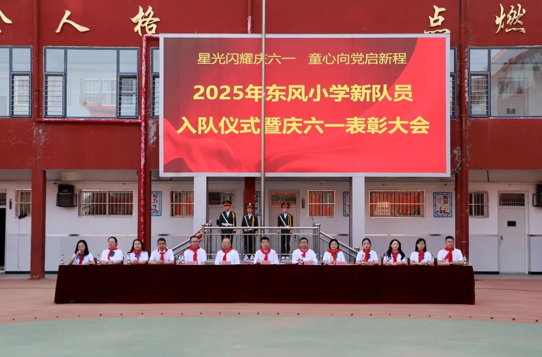 在东风小学,县委副书记、政府县长张鹏耀,县委常委、政府副县长呼文军观看了学生们表演的精彩文艺节目,气势磅礴的腰鼓《鼓舞中华》、充满朝气的舞蹈《在阳光下》等,充分展现了新时代少年儿童积极向上的精神风貌。在嘹亮的《中国少年先锋队队歌》中,大队辅导员宣读新队员名单,优秀老队员为新队员佩戴红领巾,新入队队员面向队旗庄严宣誓。