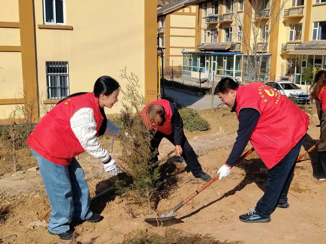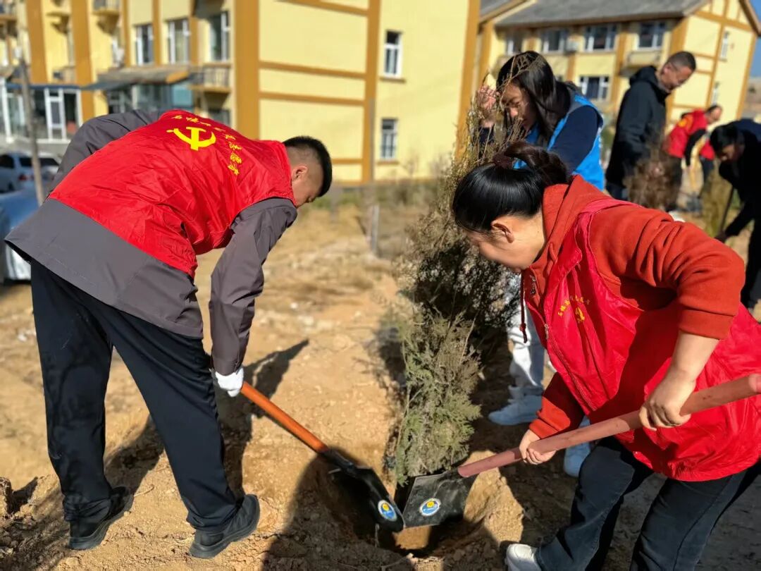 随着启动指令下达,现场迅速掀起劳动热潮。植树区域内,大家分工协作、密切配合,挥锹挖坑、扶苗培土、提水浇灌,各环节一丝不苟、衔接有序。经过一个多小时的辛勤劳作,118株新树苗顺利在移民点“安家落户”,迎风挺立,为春日石楼注入勃勃生机。