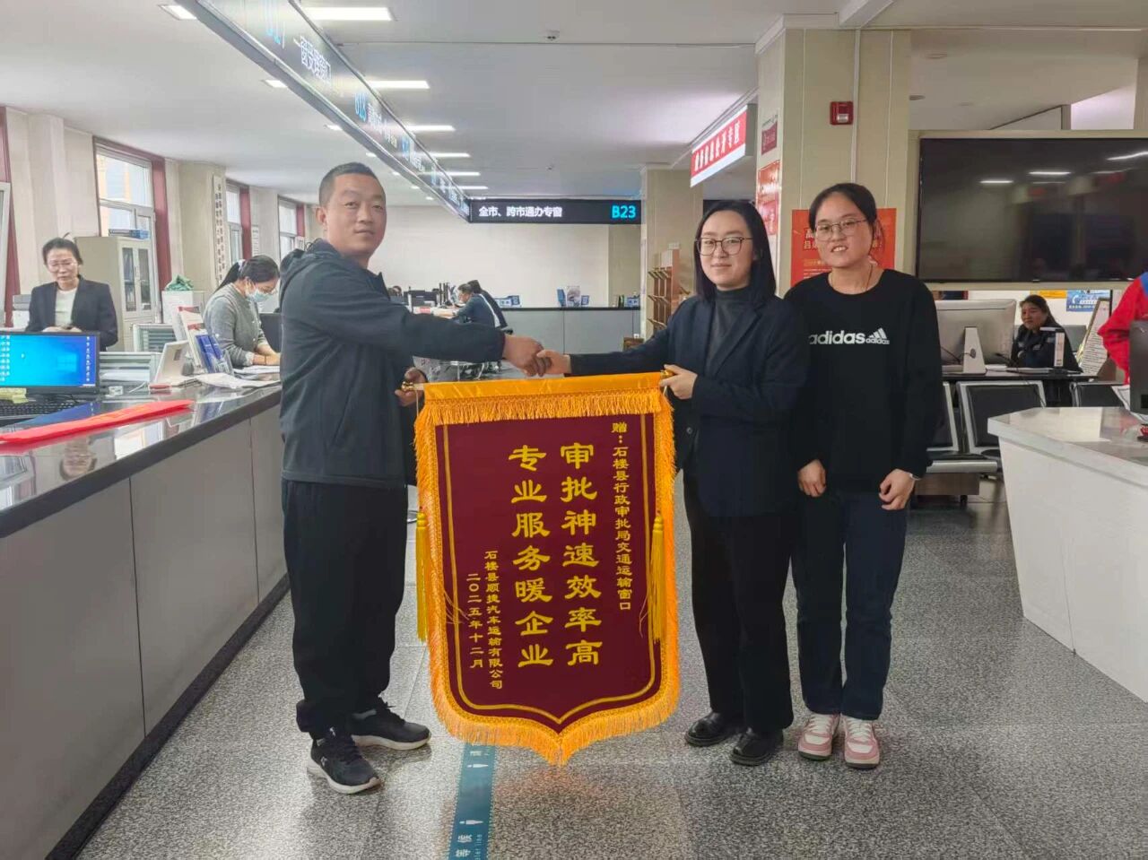无独有偶,12月5日,石楼县顺捷汽车运输有限公司也送来锦旗,“审批神速效率高 专业服务暖企业”的字样格外醒目。原来,该企业车辆外出运输期间,车辆运营IC卡恰逢审核最后期限。交通运输窗口工作人员白云采取“点对点”核验营运资料、并联核定特种设备登记资料的方式,在周五下午顺利办结所有业务。企业负责人激动地表示:“窗口的高效专业,帮我们抓住了商机,相当于增加了上万元收入!”
