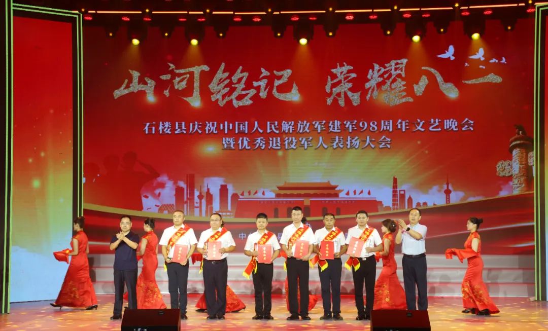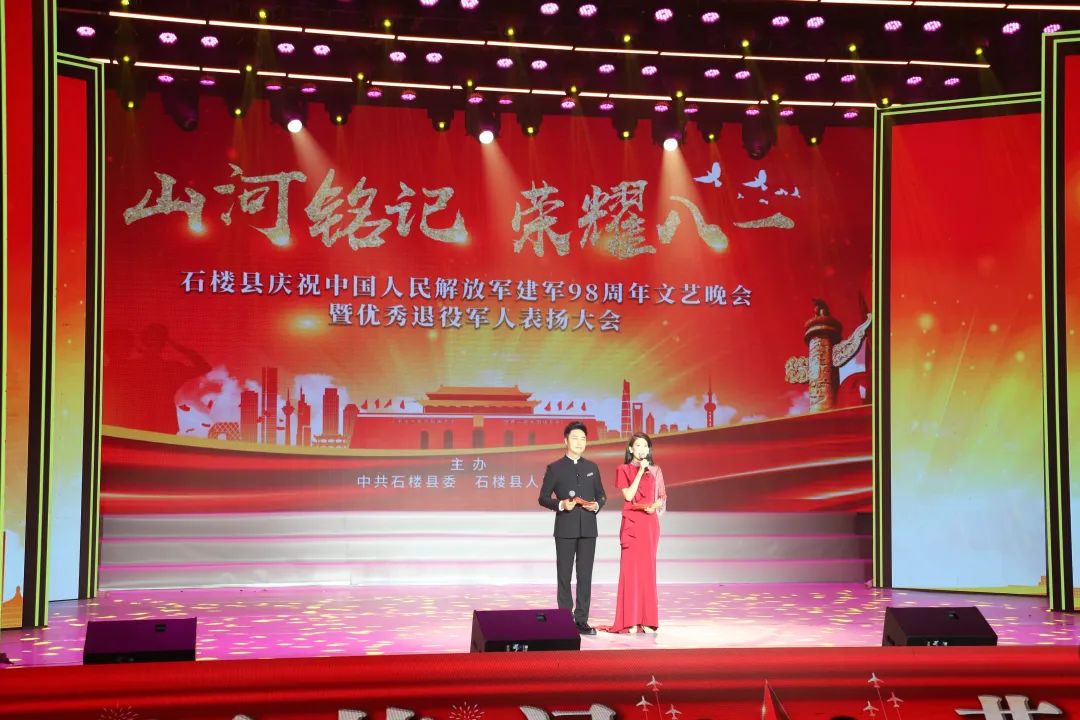 7月25日晚,我县在晋西影院举办“山河铭记 荣耀八一”庆祝中国人民解放军建军98周年文艺晚会暨优秀退役军人表扬大会。吕梁市委常委、军分区羊海江,吕梁市人大常委会副主任闫玉萍,石楼县委书记、人武部第一书记杜侯平,吕梁市军分区苏卫华,吕梁市退役军人事务局党组书记、局长刘瑞锋,石楼县委副书记、政府县长张鹏耀,来自市、县两级的各级领导,处级退休老领导参加。