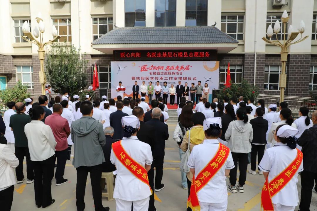 8月30日,“医心向阳 名医走基层”石楼县志愿服务项目暨扶阳医学传承工作室揭牌仪式顺利开展,县委常委、政法委书记杨剑,团中央驻石楼县乡村振兴工作队队长、政府副县长彭振,中国中医科学院广安门医院教授李海霞、中国中医科学院西苑医院教授雷燕、中国中医科学院广安门医院教授王淑丽等一行11人出席活动,县卫健局、县科协、共青团石楼县委、县中医医院负责人及全体医护人员参加活动。