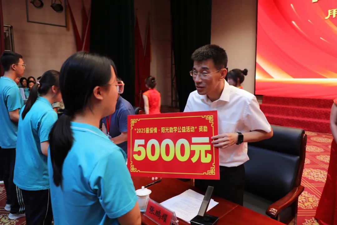 杜侯平代表县四大班子及12万干部群众,向山西省晋绥文化教育发展基金会和企业家们致以衷心感谢。他指出,今年是基金会连续帮扶石楼的第9年,9年来基金会累计捐资440万元,助力851名寒门学子圆梦大学,此次再为100名新生送来资助。这份深情厚谊,县委县政府永远铭记在心、感恩于怀。近年来,石楼县坚持教育优先发展,围绕“投入、团队、管理”核心要素,建立“双基、双优、双防、双建”“四位一体”机制,累计投资1.68亿元改善教育条件、1500万元提升教师待遇、600万元优化课后服务,推动教育质量持续提升。2025年高考,全县860名考生中本科达线603人(达线率70.1%)、特控线达线157人(达线率18.3%),600分以上14人,交出“小县办大教育、穷县办好教育”的过硬答卷。他寄语受助学子,要化感恩为动力,志存高远、自强不息,学成后回报家乡。