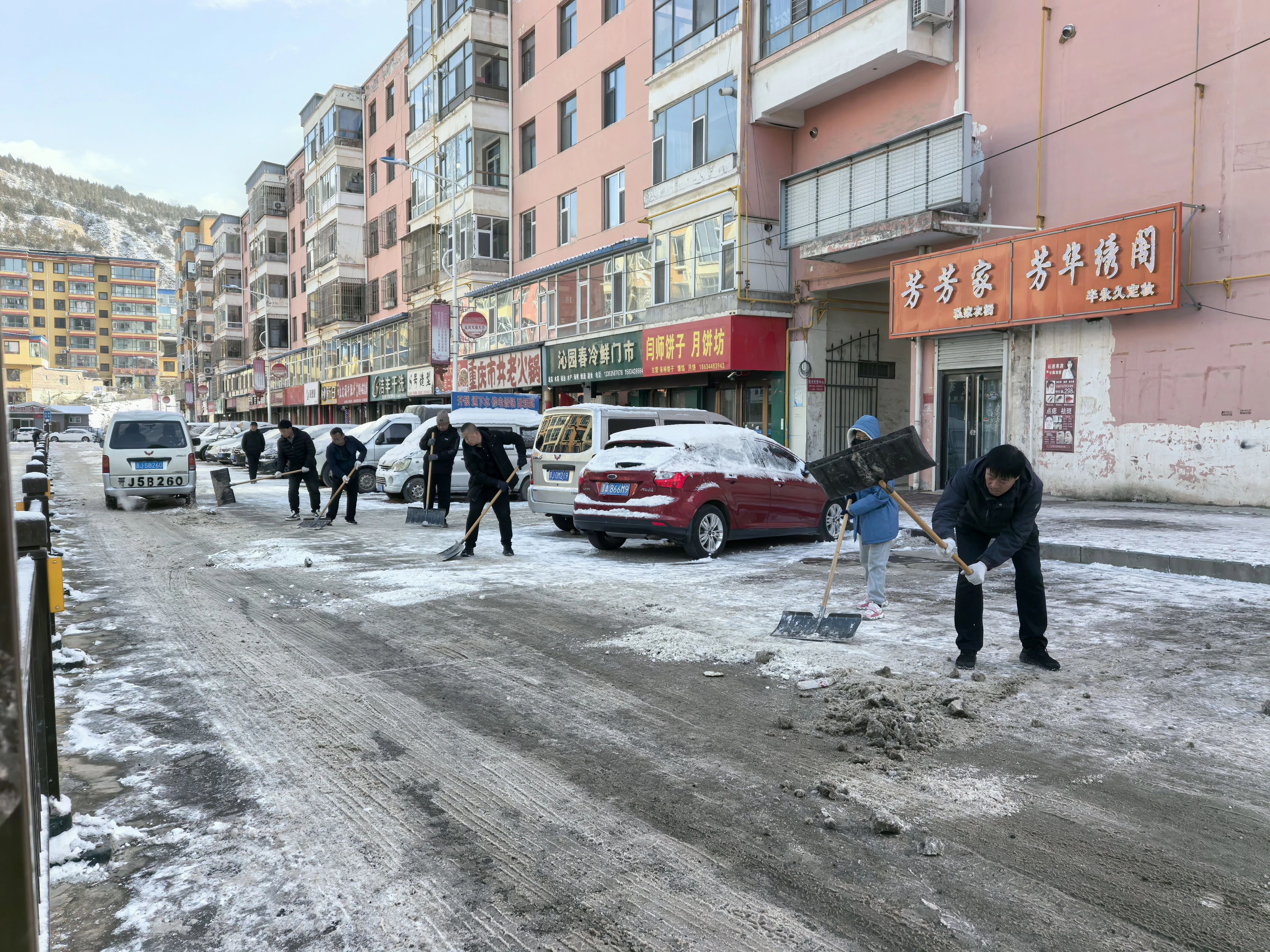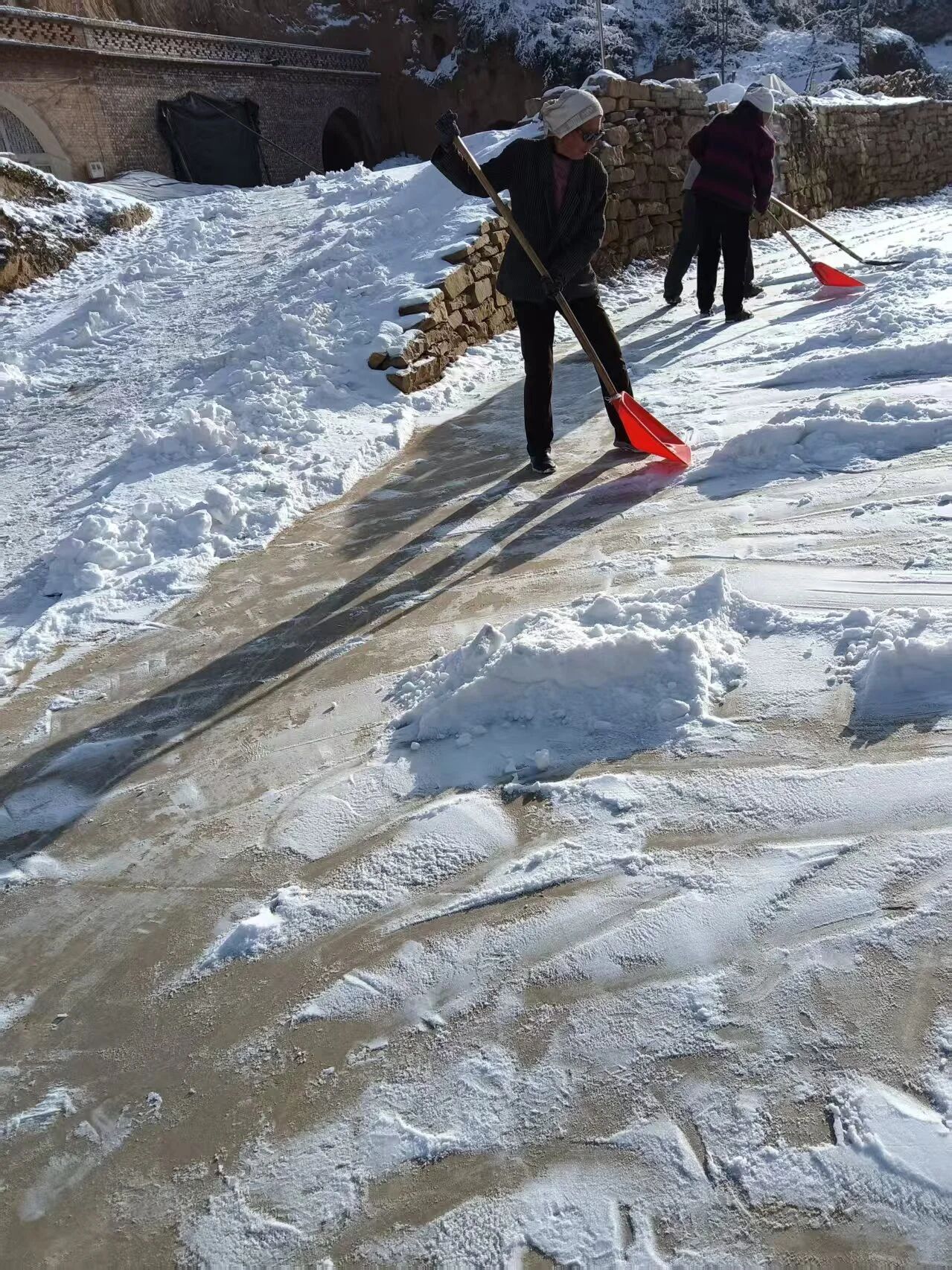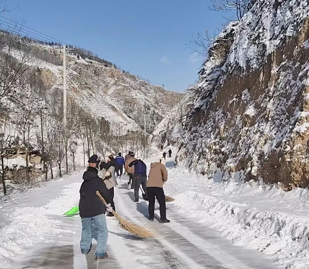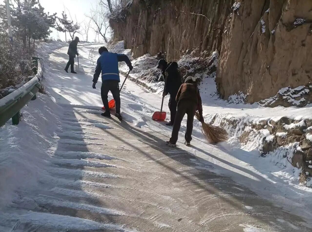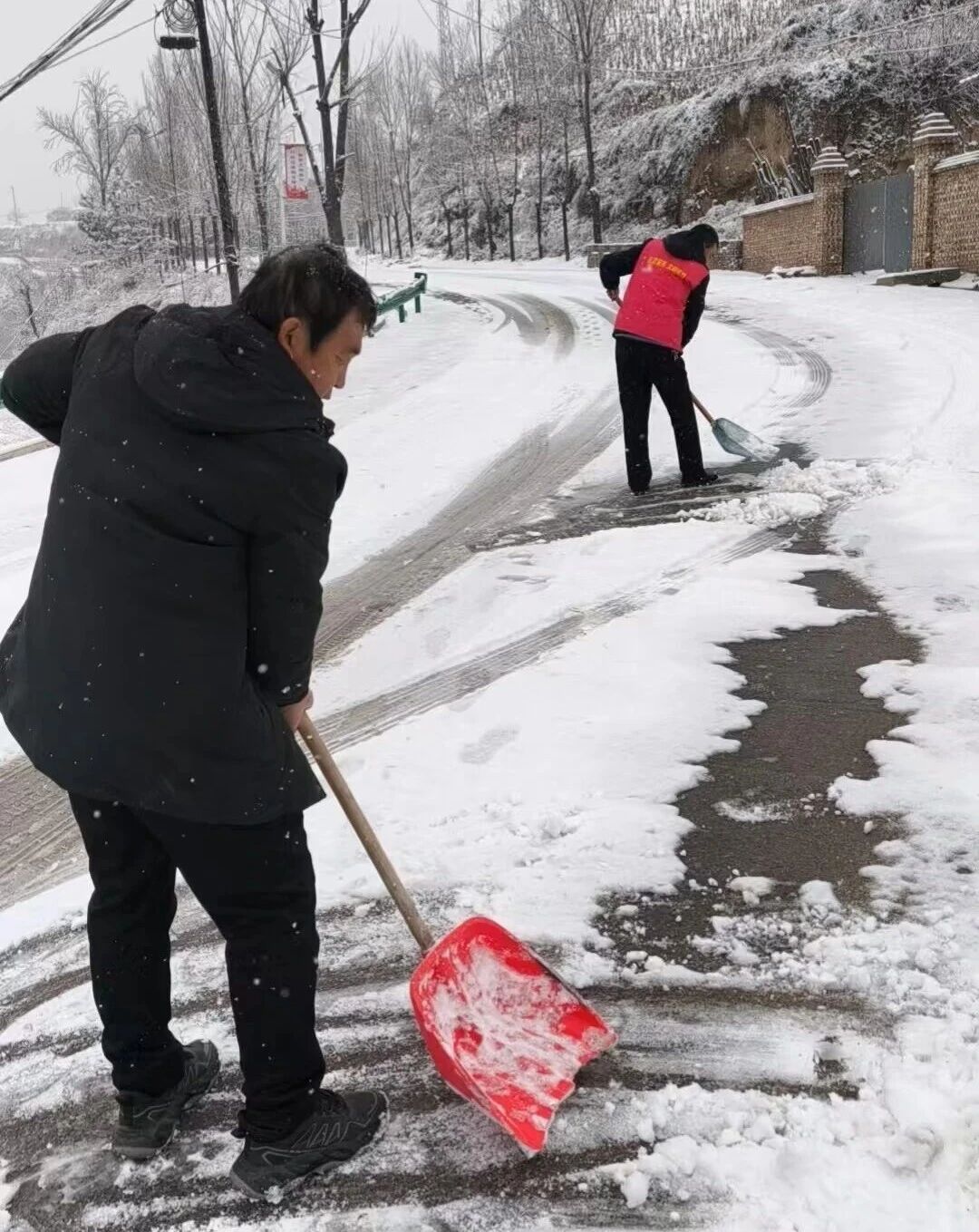 行动中,大家以雪为令、闻雪而动,手持铁锹、扫帚等工具,奔赴主次干道、乡村巷道、农户房前屋后等关键区域,全面开展扫雪除冰作业。凛冽寒风中,党员干部带头冲锋,志愿者们分工协作,村民群众积极参与,挥舞工具铲冰除雪,默契配合清理路面。铁锹撞击冰层的清脆声响、扫帚清扫积雪的簌簌声与大家的吆喝声交织,构成冬日里最暖心的画面。经过数小时奋战,辖区各主要道路、关键节点的积雪积冰被全面清除,为村民开辟出安全畅通的出行通道。