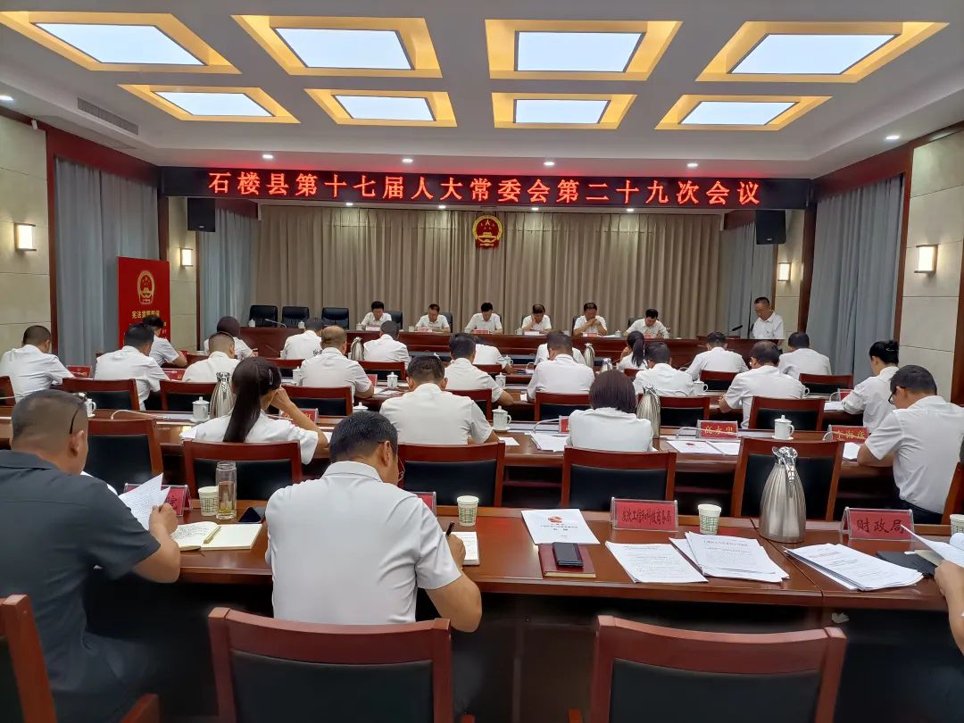 8月30日,石楼县第十七届人大常委会举行第二十九次会议,县人大常委会主任韦世平,副主任刘建兵、宋小泉、宁侯保、温建宏以及县人大常委会其他组成人员参加会议。政府副县长袁红青,县直有关单位负责人,各乡镇人大主席和部分人大代表列席会议。
