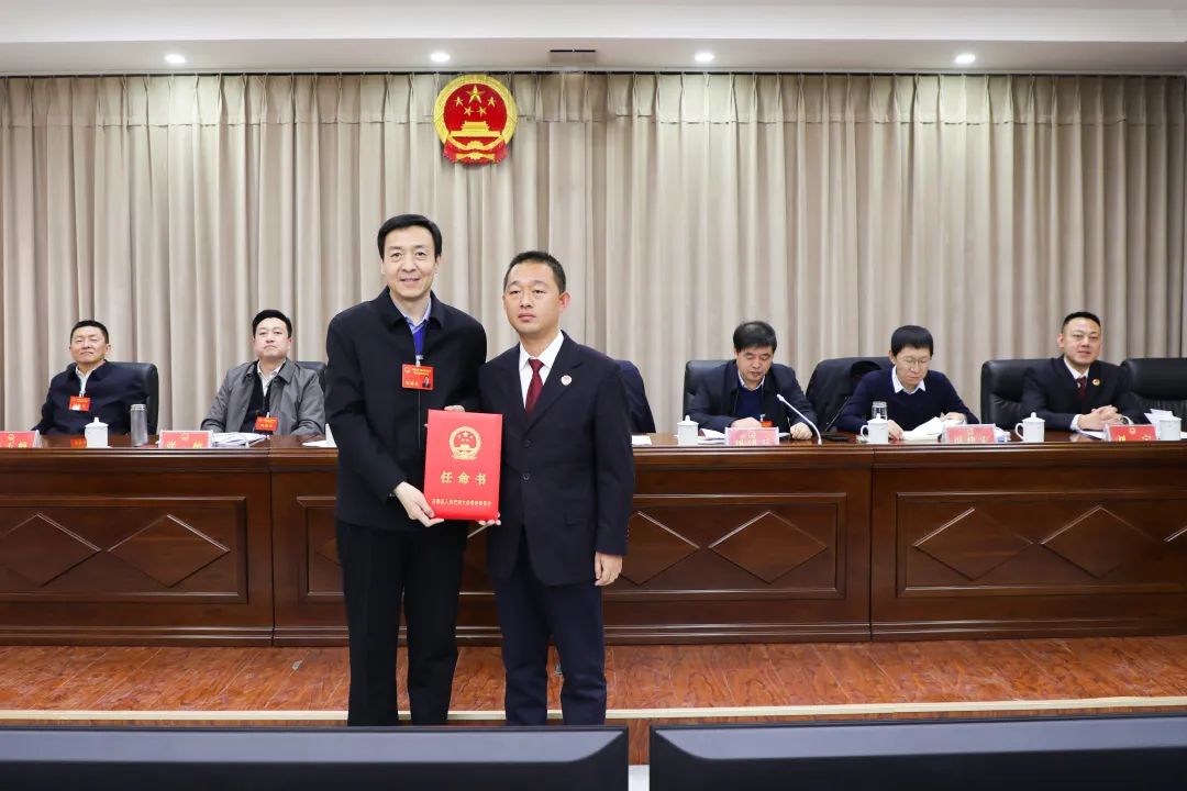 会议表决通过了人事任免事项,韦世平为新任职人员颁发了任命书。随后,新任职人员进行了宪法宣誓。