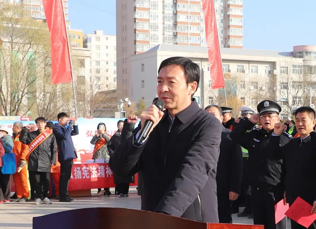 为大力弘扬宪法精神,进一步推动全面深化改革。12月4日,我县在沁园春广场隆重举行2024年“宪法宣传周”启动仪式暨平安建设宣传活动。县领导韦世平、陈建林、杨剑、刘建兵、宋小泉、袁红青、梁玉明、刘宁出席活动,政法单位宣传队、县直单位宣传队、乡镇宣传队参加活动。政府副县长、公安局局长张小健主持启动仪式。