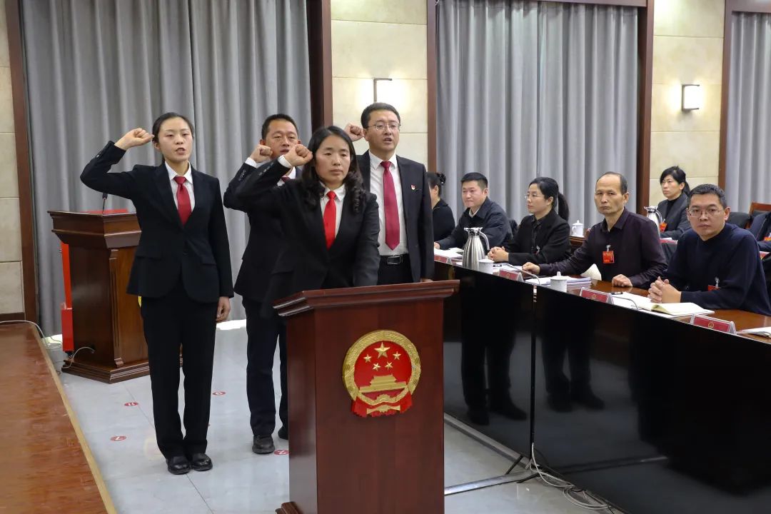 会议表决通过了人事任免事项,韦世平为新任职人员颁发了任命书。随后,新任职人员进行了宪法宣誓。