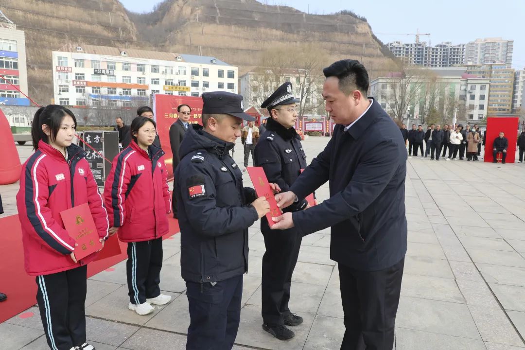 仪式上,志愿者代表首先进行了发言。随后出席活动的县领导分别为县医疗集团学雷锋志愿服务队、石楼一中学雷锋志愿服务队、石楼中学学雷锋志愿服务队、县公安局学雷锋志愿服务队、县应急管理局学雷锋志愿服务队、县退役军人事务局学雷锋志愿服务队授旗,并为优秀志愿者代表颁奖。