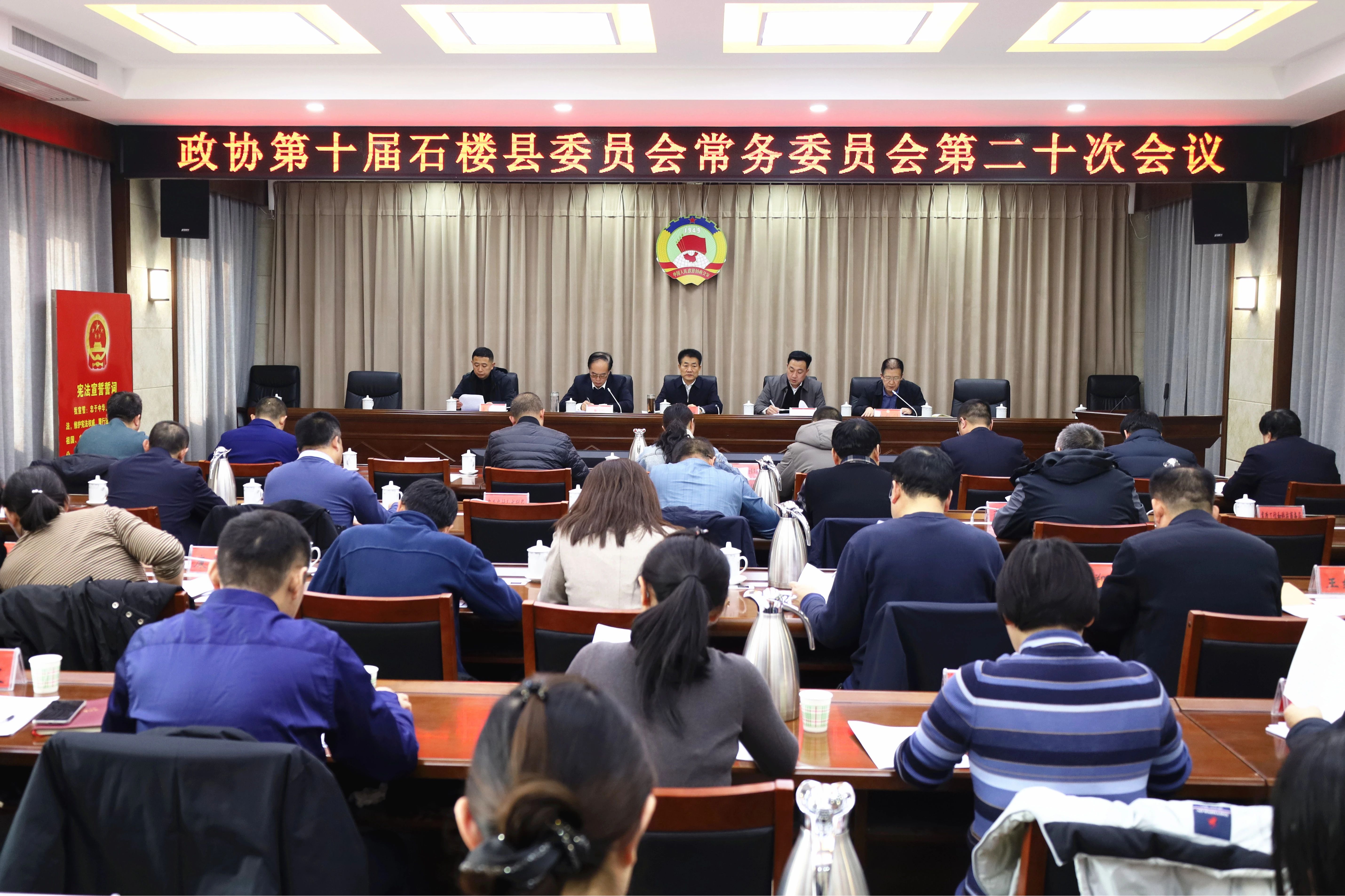 1月23日,政协第十届石楼县委员会常务委员会召开第二十次会议。政协主席陈建林,县委常委、政府副县长张帅,政协副主席张晓炯、刘毅剑,政协常委,相关提案承办单位负责人、政协工委主任、各界别组组长、各乡镇政协联络组长及部分提案委员参加会议。