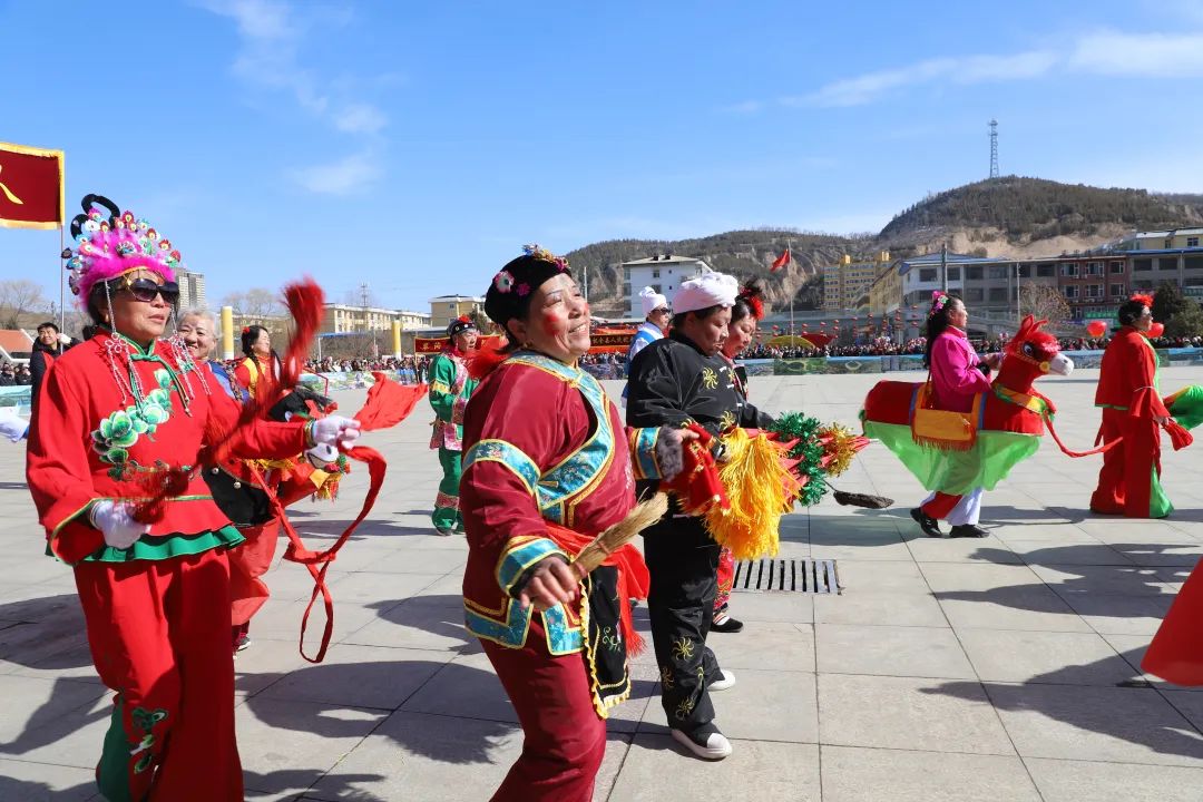 尽管天气寒冷,却丝毫没有阻挡队员们的热情。他们精神抖擞,步伐矫健,伴随着明快的鼓点,一路欢歌,动作整齐划一、热情奔放,一举手、一投足、一转身尽显秧歌范儿。灵泉镇的舞龙舞狮气势磅礴,巨龙腾飞、雄狮跳跃,引得观众阵阵惊呼;曹家垣乡的花样扇子舞轻盈灵动,彩扇似繁花绽放,编织出如梦似幻的美景;辛关镇的伞头说唱韵味十足,幽默风趣的唱词、灵动的表演,将地方文化演绎得淋漓尽致;小蒜镇的腰鼓铿锵有力,激昂的鼓点振奋人心;裴沟乡的踩高跷惊险刺激,表演者们身轻如燕,在高跷上做出各种精彩动作 ,让人拍案叫绝……一场场极具特色的展演,在震耳欲聋的锣鼓声中,给现场观众带来了春雷滚滚般的震撼,让现场观众沉浸在民俗文化的独特魅力之中。