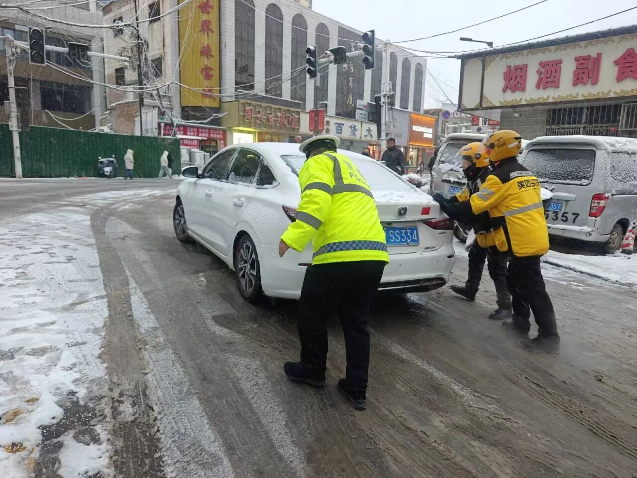“雪下得挺大,路上挺滑的,一开始还担心不好走。没想到交警同志一直在路口疏导交通,看到有车辆打滑还主动过来帮忙,有他们在,我们开车心里特别踏实,为他们的辛苦付出点个赞!”石楼县城区驾驶员王女士感激地说道。