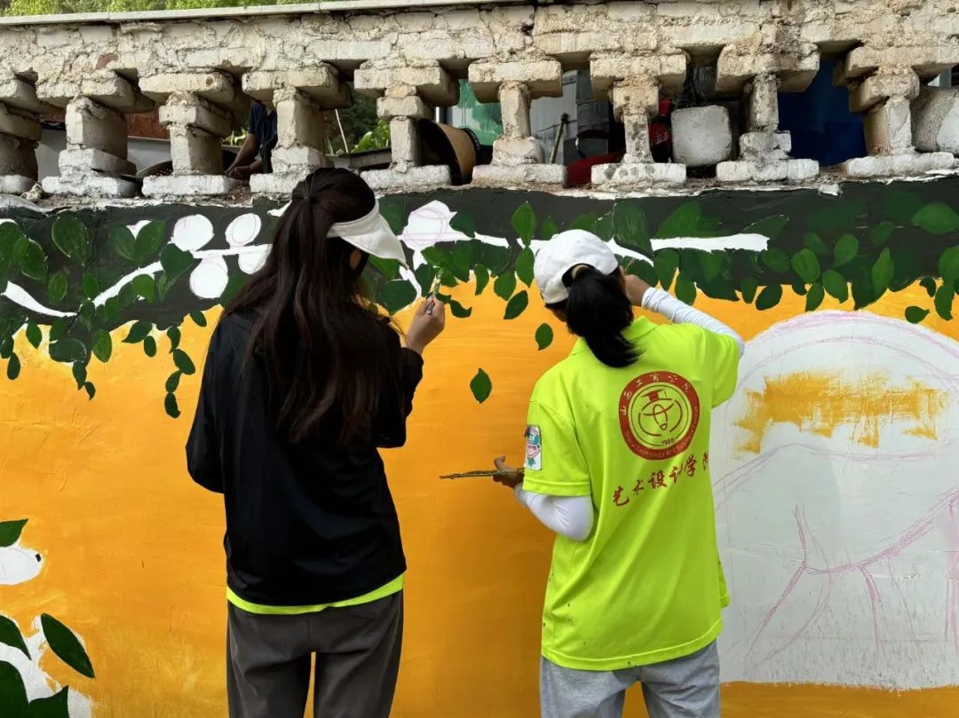 墙绘工作之余,同学们向当地村民请教,学习农耕文化知识、体察民情、了解民况,与当地百姓“一块吃、一块住”,为自己的青春留下了充实、温暖的印记。