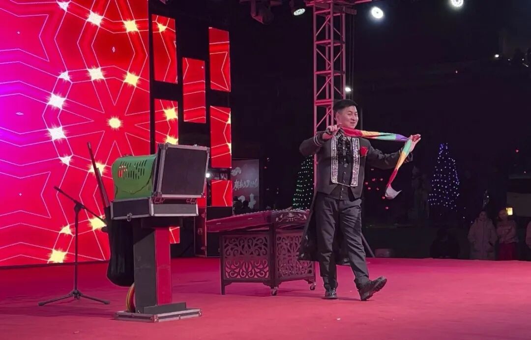 当日的泊河村游乐园,处处张灯结彩,洋溢着喜庆祥和的节日氛围。活动现场,红灯笼与彩灯交相辉映,九曲黄河灯阵蜿蜒流转,非遗手作与特色市集人头攒动。随着文艺汇演正式拉开帷幕,整场演出以传承与创新为脉络,兼具经典韵味与时代气息。国粹绝活率先登场,精湛的技艺赢得满堂喝彩;川剧《变脸》瞬息万变,尽显传统戏曲的神奇魅力。民乐演奏《春节序曲》《喜洋洋》《花好月圆》奏响新春乐章,旋律欢快激昂,瞬间点燃全场热情。魔术《梦幻魔术秀》以精妙手法带来奇幻体验,引得观众连连称奇。互动雅集《灯影猜谜 福满元宵》将传统文化与趣味互动相结合,游客们纷纷驻足猜谜,在趣味答题中感受传统节日魅力。