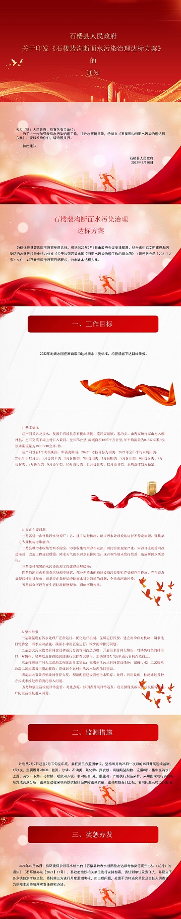 关于印发《石楼裴沟断面水污染治理达标 方案》的通知