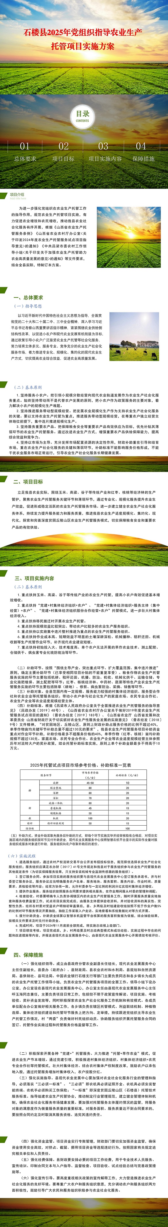 关于印发《石楼县2025年党组织指导农业 生产托管项目实施方案》的通知