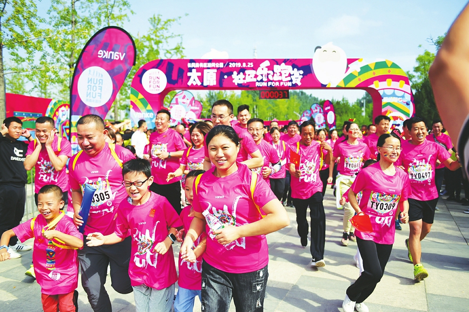 8月25日,太原市汾河公园内,千余名居民在风景秀丽的汾河岸边参加2019太原·社区乐跑赛。二青会的成功举办让省城市民参与全民健身的热情持续高涨。(阮洋摄)