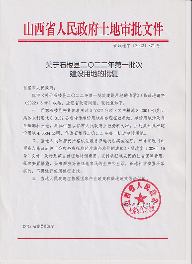 石楼县2022年第一批次建设用地