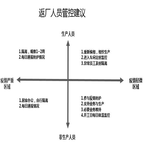 根据疫情区域情况,制定返厂复工人流管控方案以及复工期间人流管控措施。