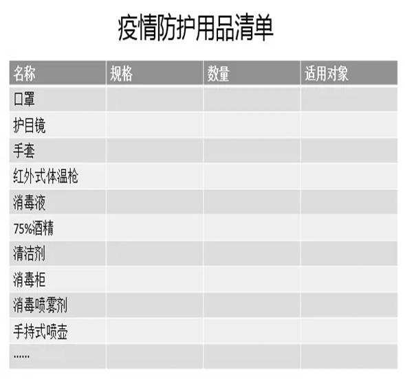(七)疫情防护用品准备清单