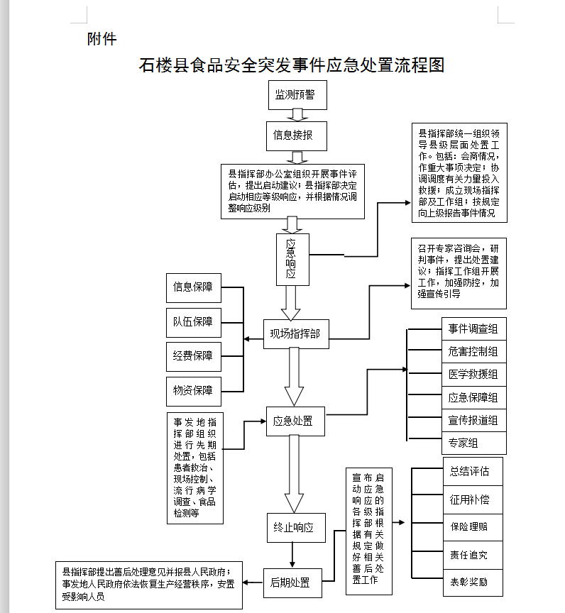(2)县指挥部有关成员单位立即赶赴现场,按职务分工迅速开展食品安全事件处置工作。