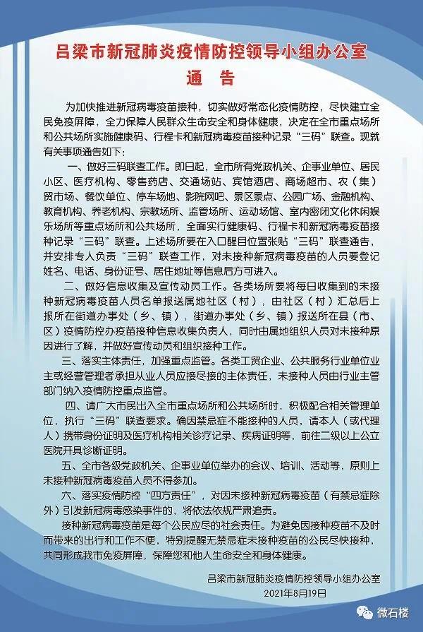 吕梁市新冠肺炎疫情防控领导小组办公室通告