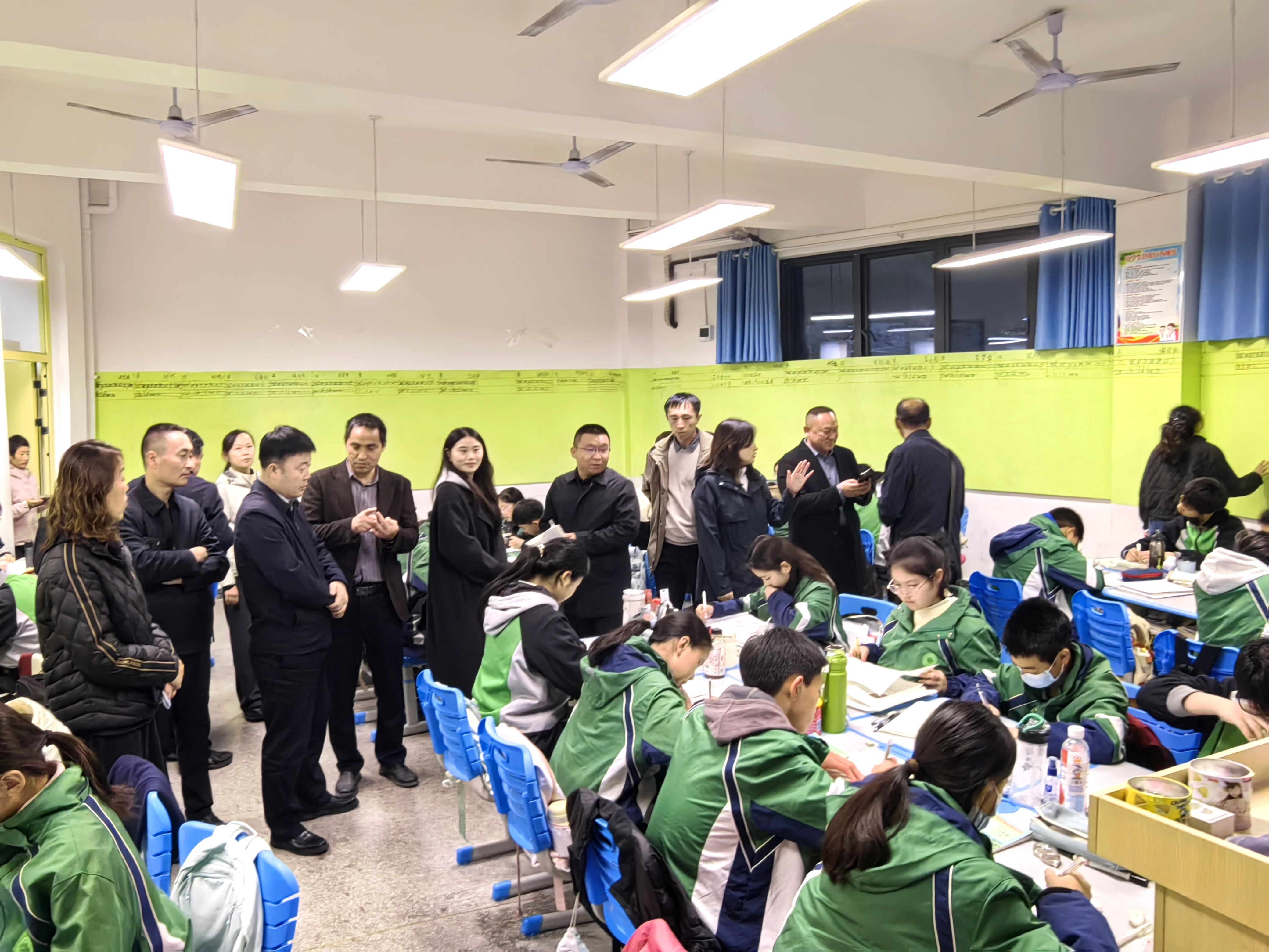 研修期间,由呼文军带队走进重庆谢家湾学校、树人景瑞小学、宜宾市凉水井学校等标杆校,与参训管理者一同沉浸式观摩、深度交流,从县域发展全局出发,多次作出指示要求:校长是学校发展的核心引擎,要主动将研修所学转化为办学治校行动;要推动“常规教学+AI理念”深度融合,通过每周开设固定AI课程提升培训效率;明确“培训前锚定痛点、培训中深学细思、培训后快速落地”的全流程要求,同时强调要严格执行八项规定、筑牢安全防线,勉励大家以饱满状态将先进经验转化为实效。县委领导与教体局的高位推动、全程参与,让研修始终保持靶向精准、务实高效的鲜明导向。