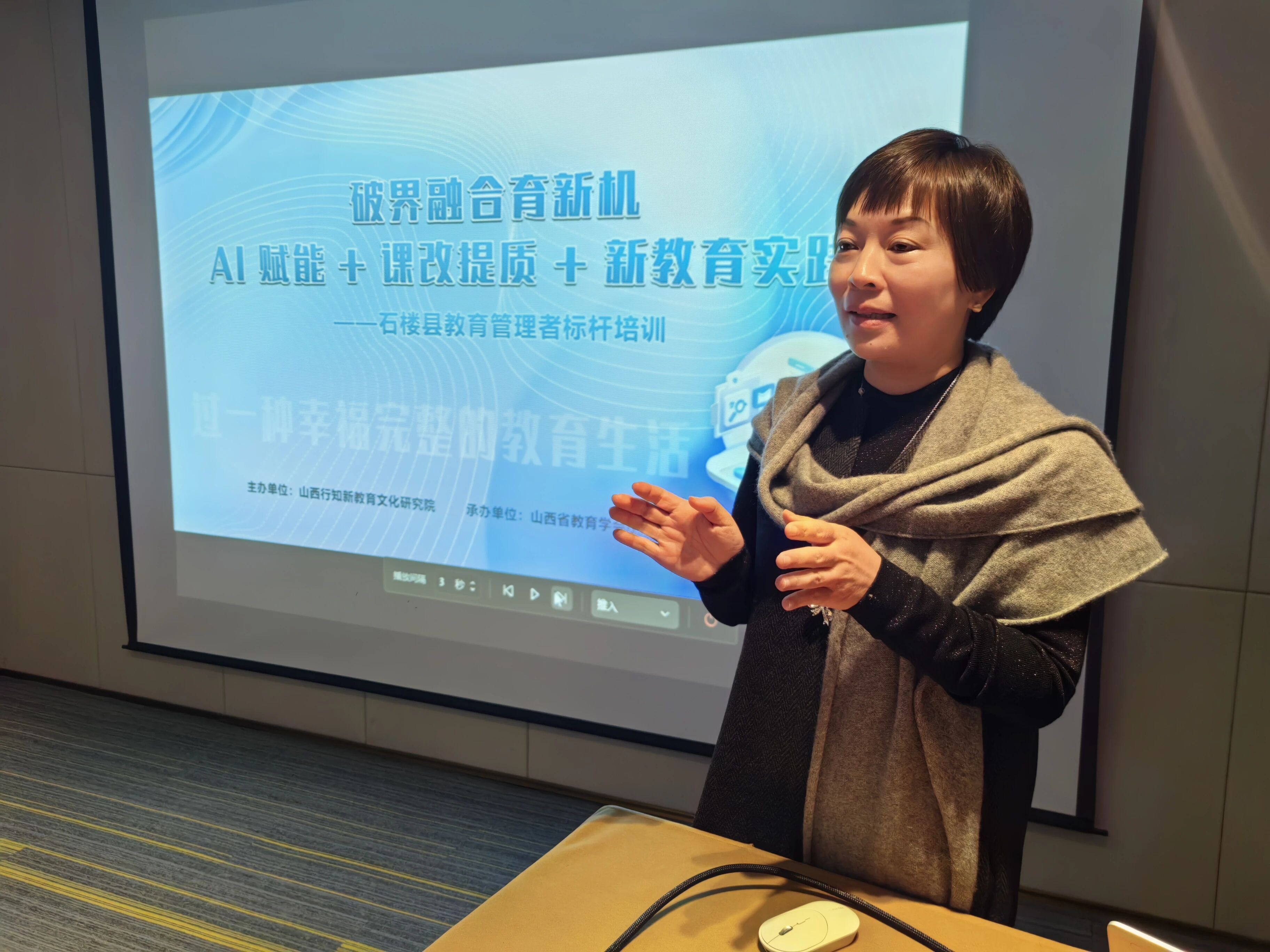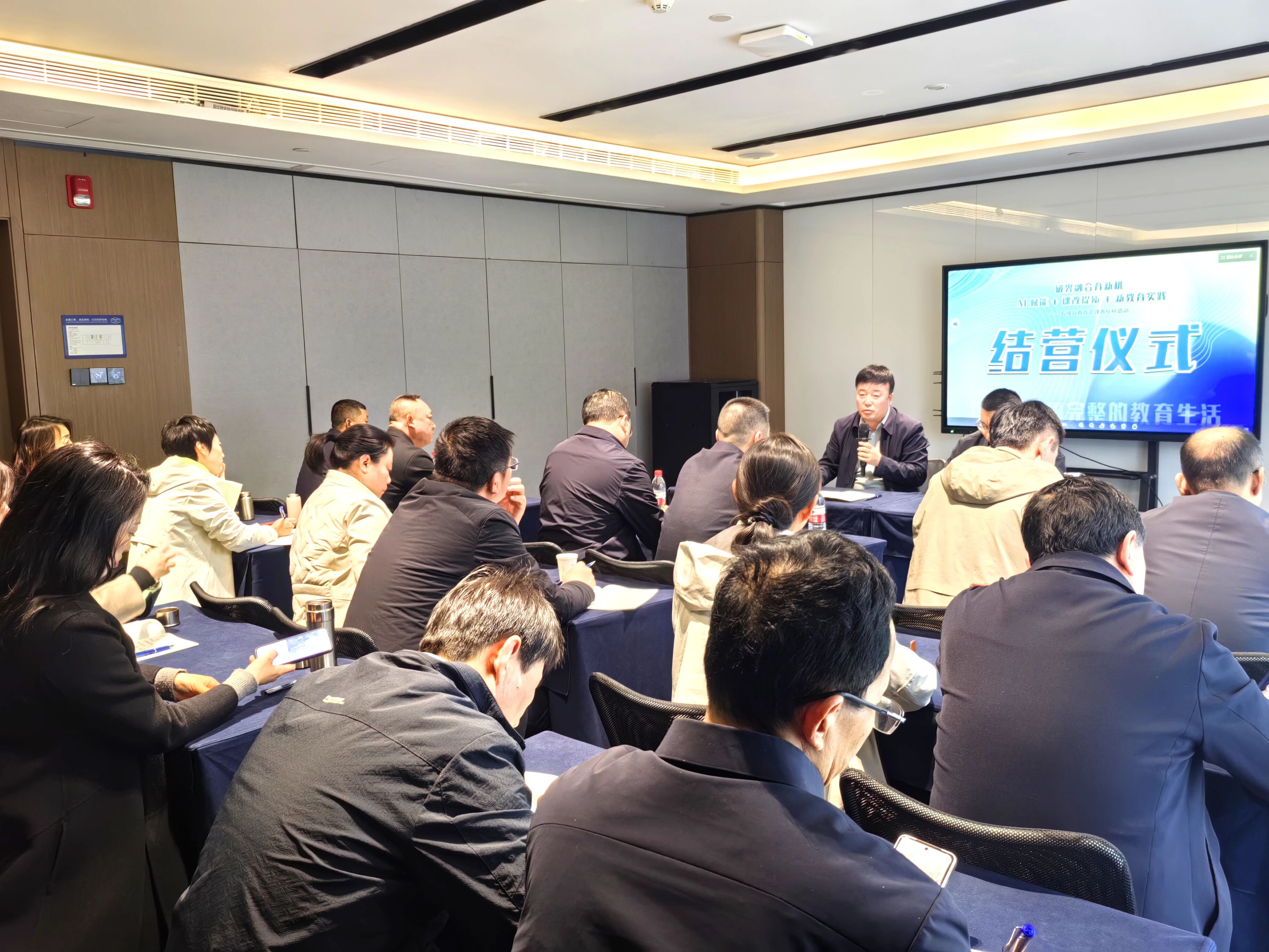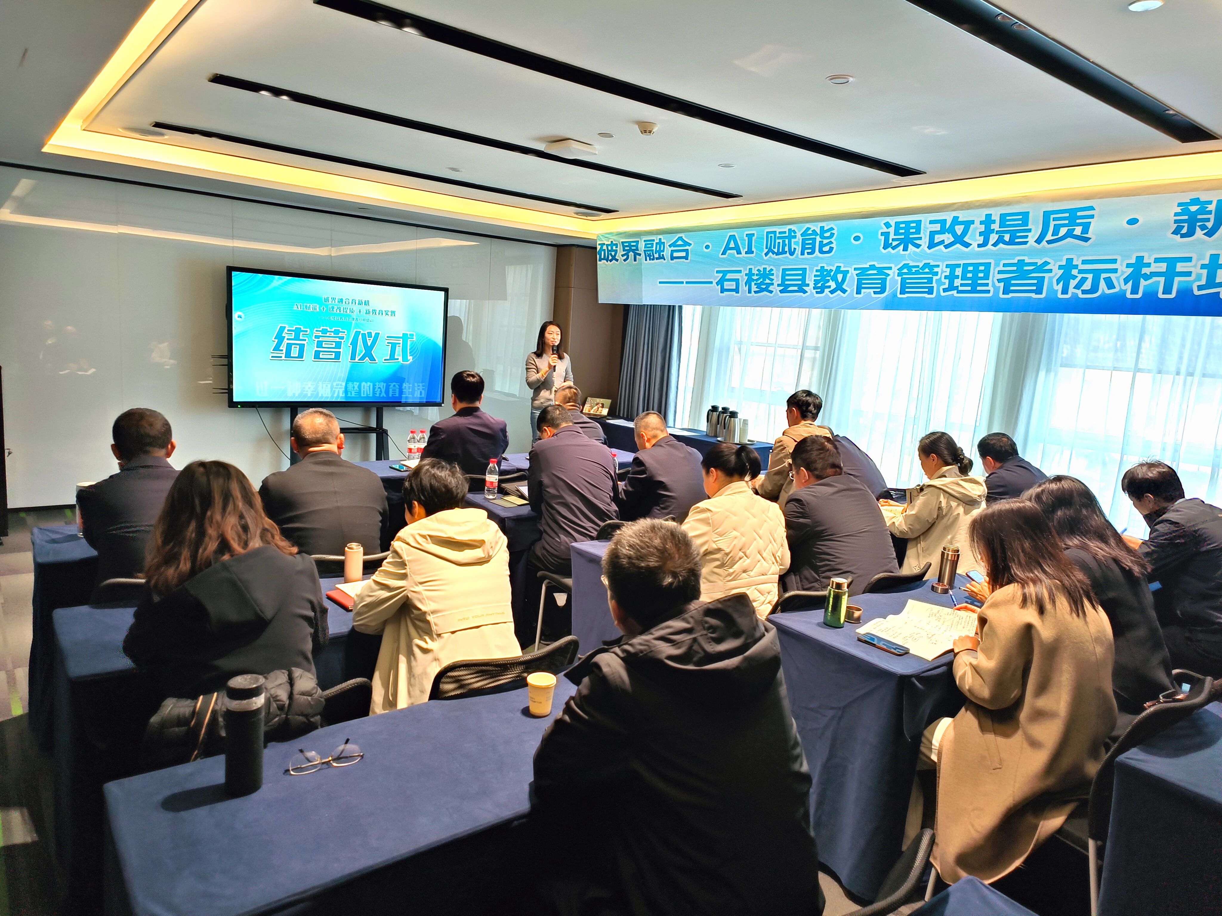 11月30日晚的开班仪式上,县教体局负责人直面县域教育现状,强调此次研修是县教体局主动破局的重要部署,旨在让管理者走出县域汲取先进经验,为石楼正式推进课改、布局数字化教育找准方向。他要求全体学员带着问题学、聚焦痛点思,力求把可落地的方法和思路带回石楼,以“强师资、提质量、创特色、严管理、优生态、育新人”为目标,推动县域教育跨越式发展。