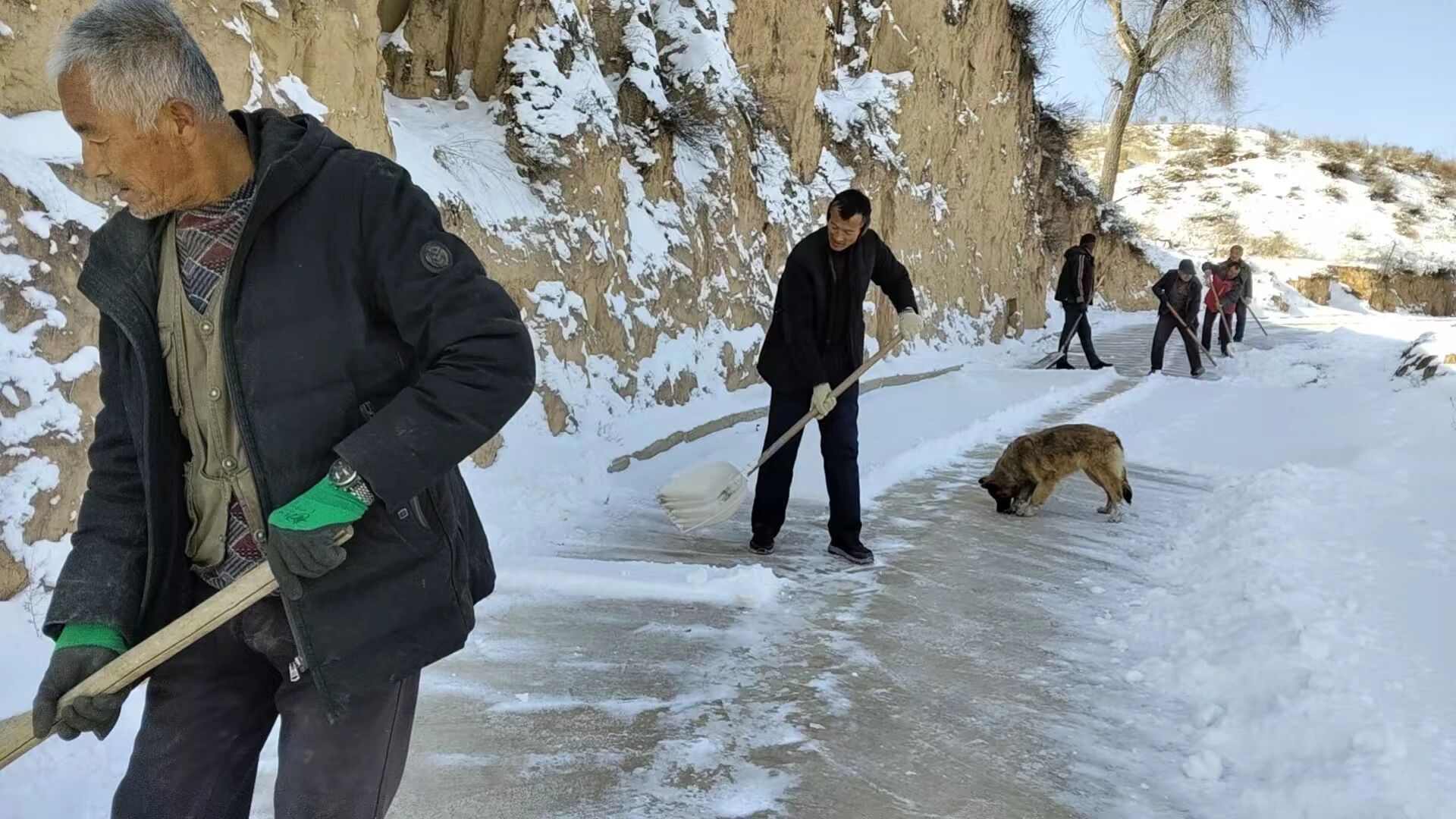 行动中,大家以雪为令、闻雪而动,手持铁锹、扫帚等工具,奔赴主次干道、乡村巷道、农户房前屋后等关键区域,全面开展扫雪除冰作业。凛冽寒风中,党员干部带头冲锋,志愿者们分工协作,村民群众积极参与,挥舞工具铲冰除雪,默契配合清理路面。铁锹撞击冰层的清脆声响、扫帚清扫积雪的簌簌声与大家的吆喝声交织,构成冬日里最暖心的画面。经过数小时奋战,辖区各主要道路、关键节点的积雪积冰被全面清除,为村民开辟出安全畅通的出行通道。