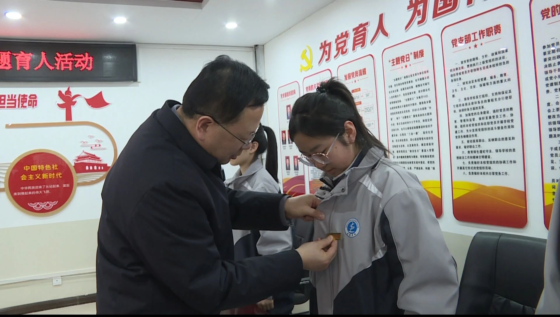 在仪式环节,劲牌基金会向学校颁发项目铜牌,与会领导为学生佩戴“劲牌阳光学子”胸牌。学校回赠捐赠牌与锦旗,团县委负责人为指导老师颁发聘书。
